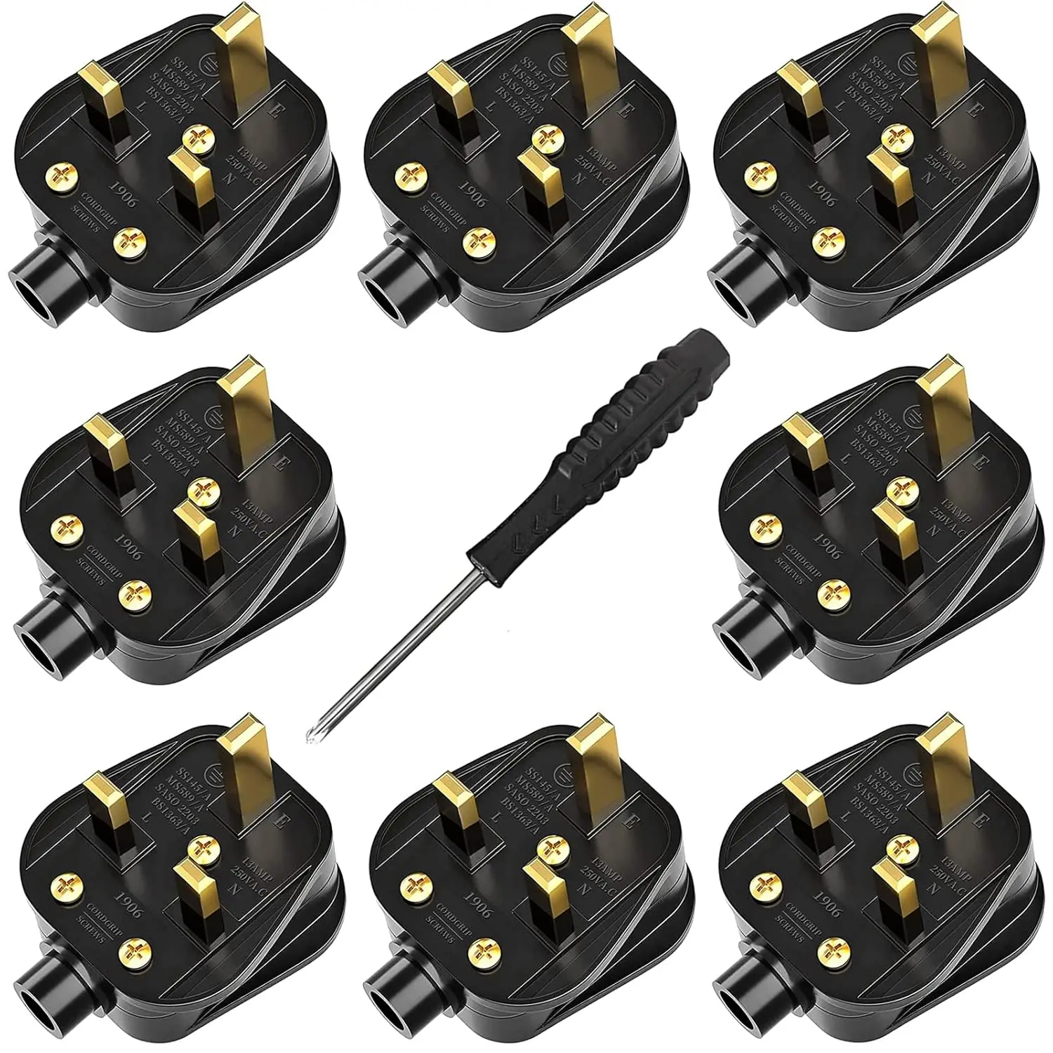 4/8pcs UK Plug Adapter Male Replacement Rewireable 3Pin Type G Plug British AC Electric Power Socket Extension Cord Connector