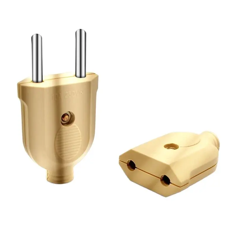 1pcs EU European 2 Pin AC Electric Power Male Plug 10A Female Socket Outlet Adapter Wire Rewireable Extension Cord Connector