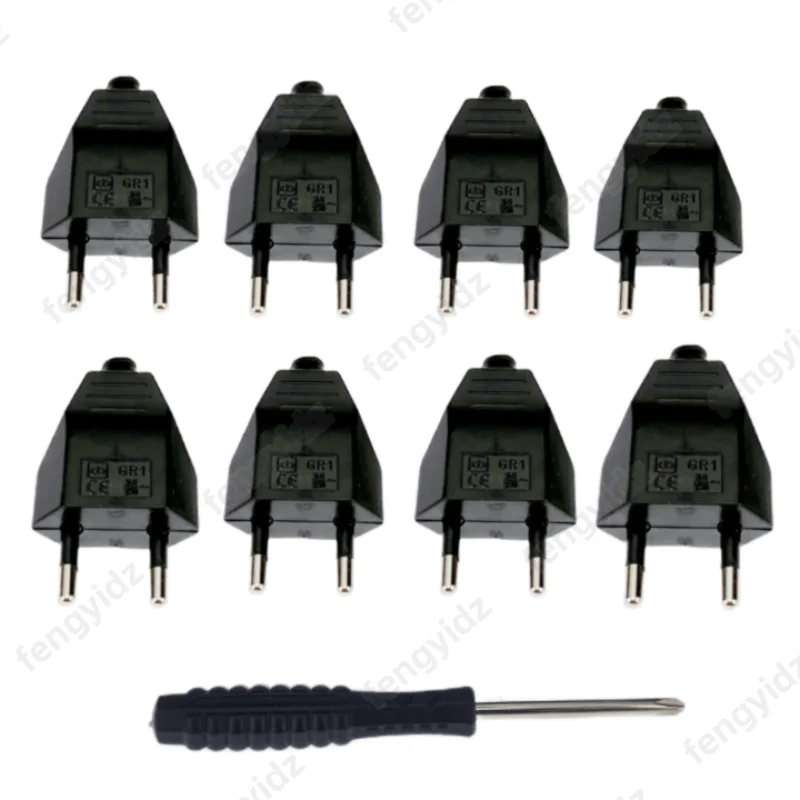 8pcs EU European Plug with Screwdriver 2 Pin Male AC Electric Power Socket Adapter 110V~250V Rewireable Extension Cord Connector