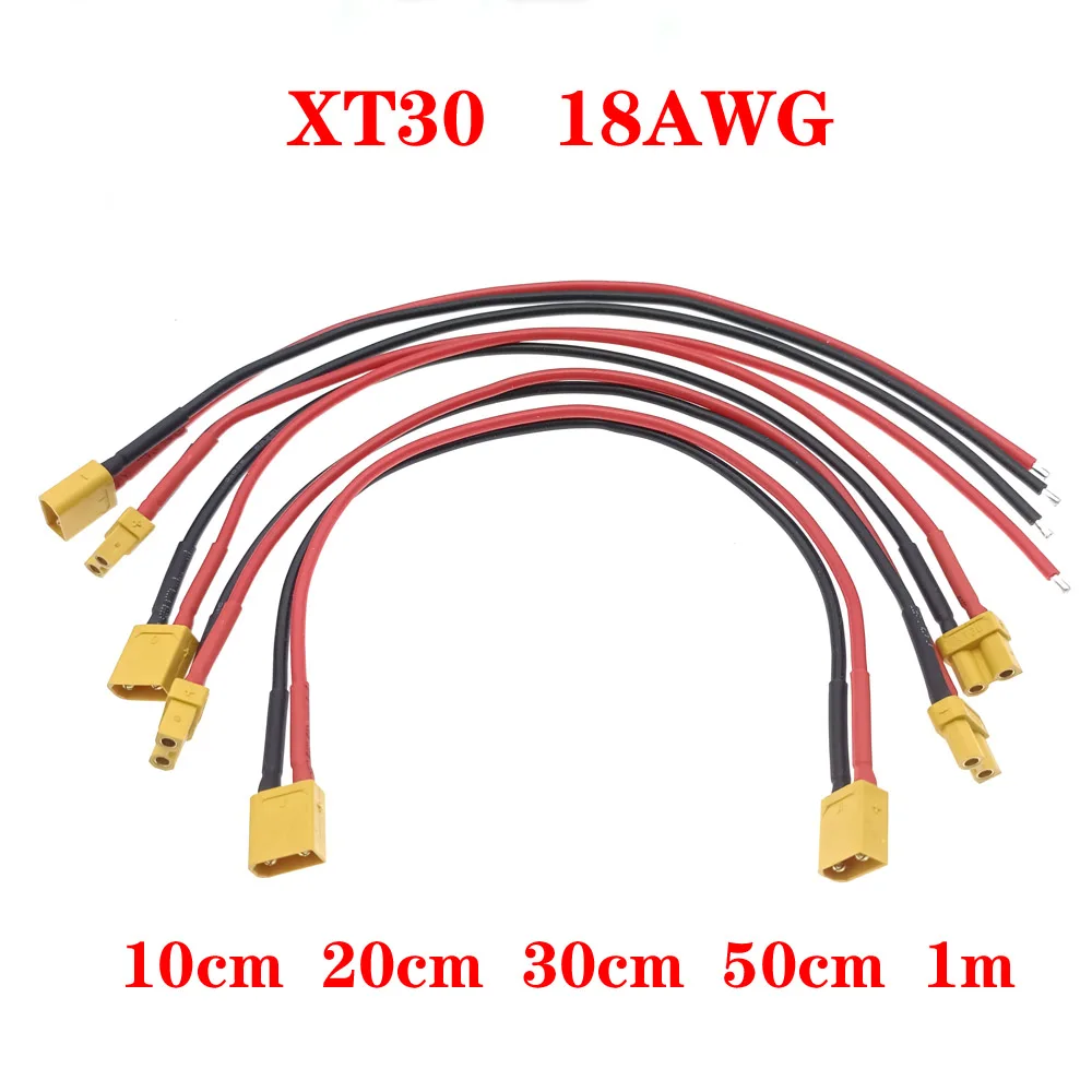 XT30 U-F/M Male to Female Plug Extension Cable Silicone rubber cable 10CM-1M 18AWG Lithium battery plug With Wire Connector