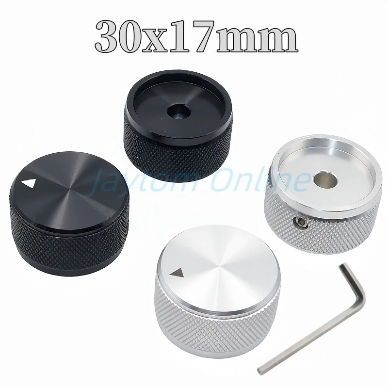 1pc 30x17mm Silver Black Aluminum Alloy Potentiometer Amplifier Knob Rotary Switch Caps Inner Hole 6MM Hexagon Socket Screw