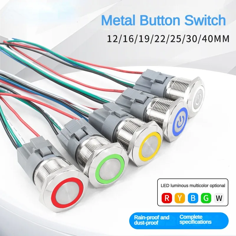 Metal button switch 12/16/19/22MM Convenient installation with wires motor automobile modification Waterproof switch LED