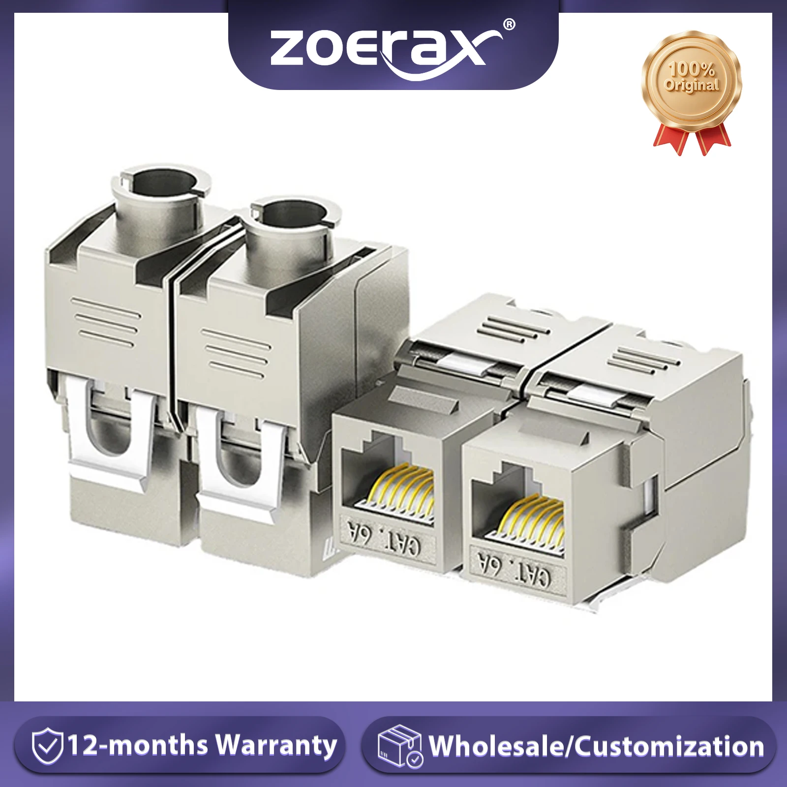 ZOERAX 1Pcs Cat6a Cat7 Keystone Jack Cat7 RJ45 STP Tool-Less Type Zinc Alloy Module Jacks Adapter Coupler for 22 to 26 AWG Cable