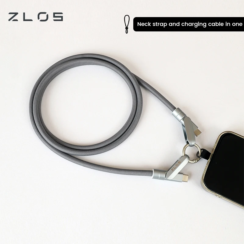 ZLOS ZC15 1.2M 2-in-1 Zinc Alloy Neck Strap with C-C Charging Cable Durable Braided Lanyard 60W Fast Charge Travel Accessory