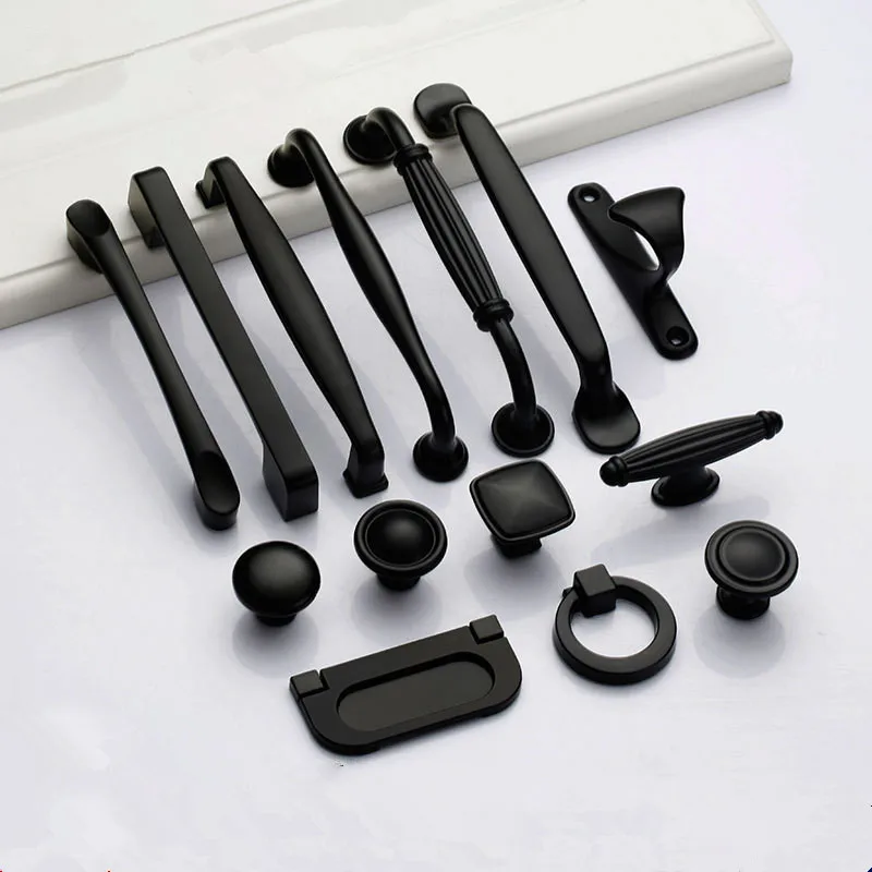 Black Handles for Furniture Cabinet Knobs and Kitchen Drawer Pulls Cupboard Aluminium Alloy
