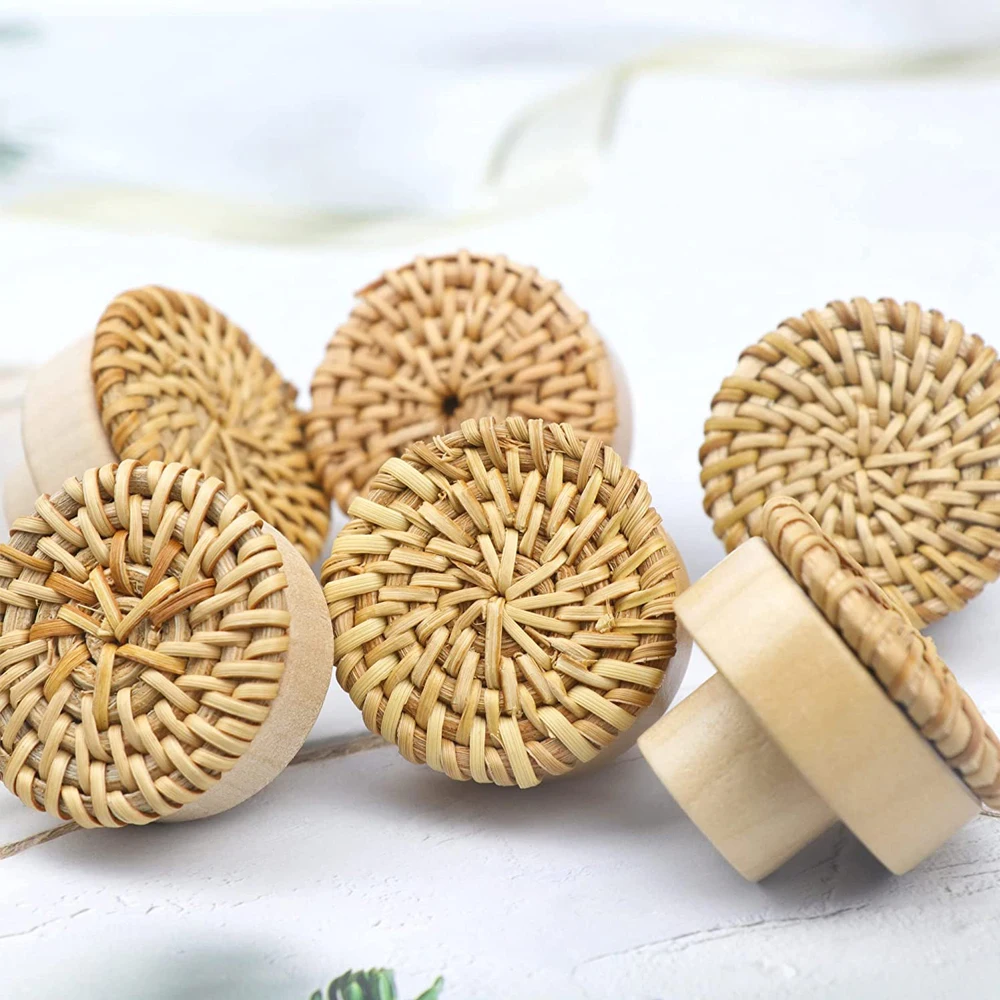 6/18Pcs Rattan Wooden Drawer Knobs Round Handmade Woven Cabinets Dresser Furniture Handles Kitchen Cupboard Wardrobe Door Pulls