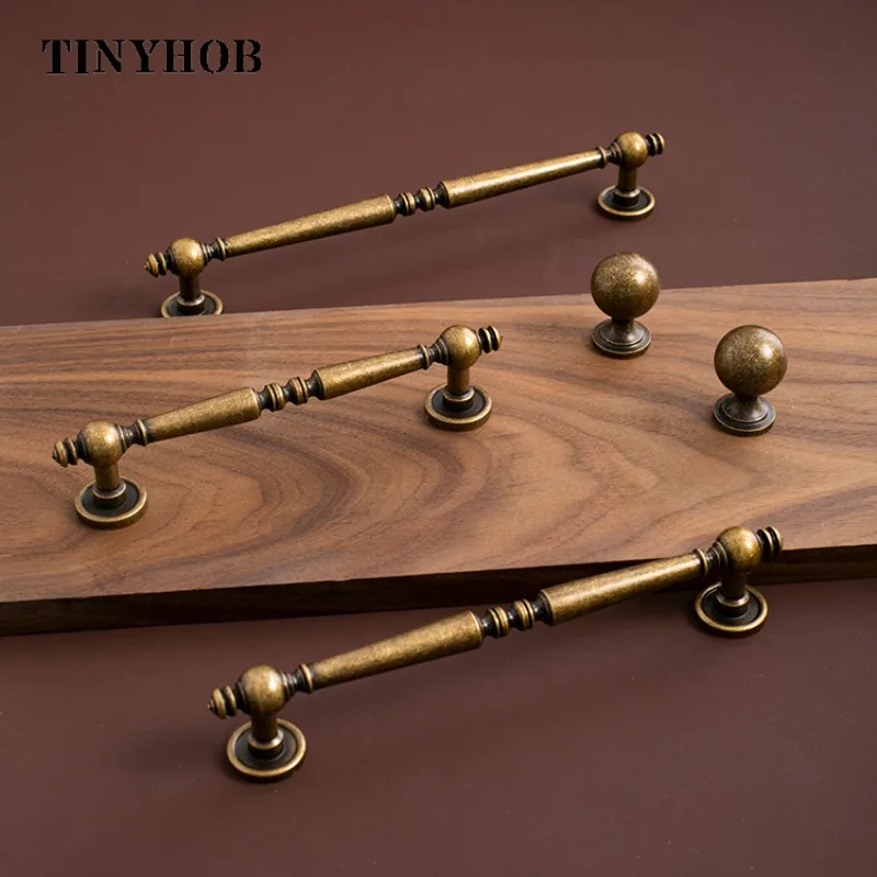Tinyhob Antique Bronze Brass Furniture Handles and Knobs Wardrobe Pulls Cupboard Door Knob Retro Kitchen Cabinets Hardware