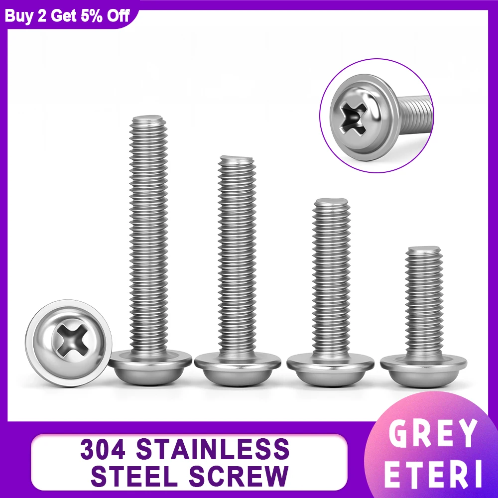 M2M2.5M3M3.5M4M5 DIN967 304 Stainless Steel Cross Phillips Pan Round Head With Washer Padded Collar Screw Bolt Pan Padded Screws