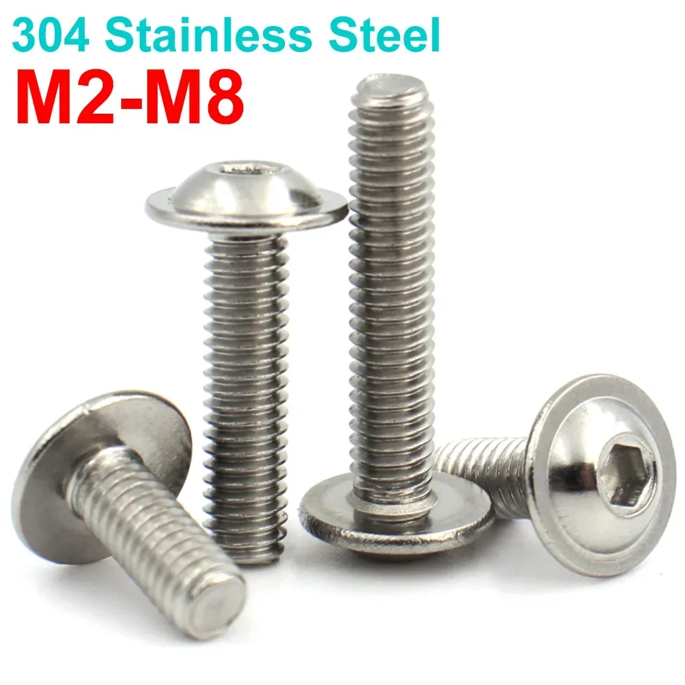 50/20/10/5pcs M2 M2.5 M3 M4 M5 M6 M8 CM ISO7380.2 304 Stainless Steel Hexagon Socket Button Head Screws With Washer Collar Bolt