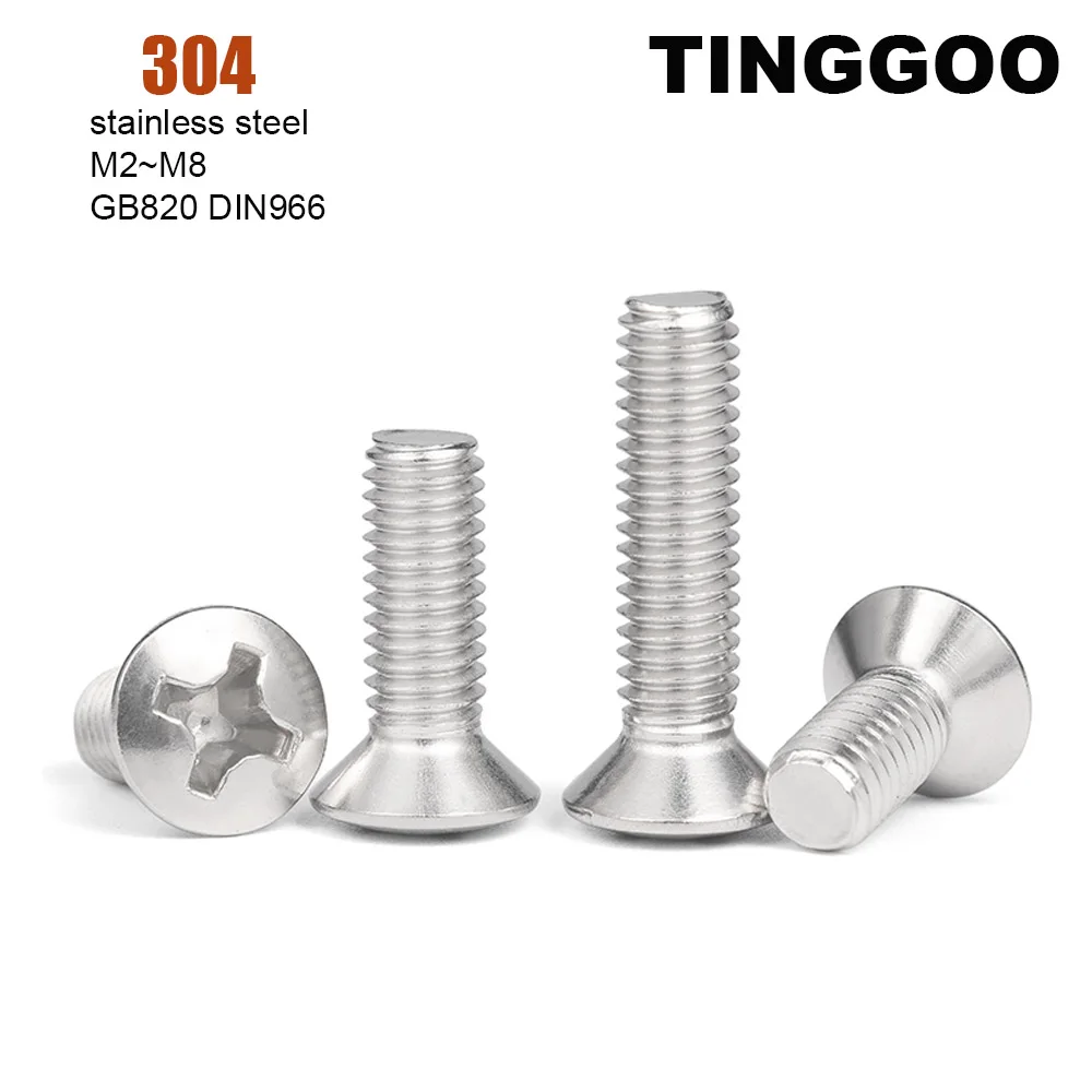 2/50Pcs M2 M2.5 M3 to M10 GB820 DIN966 304 Stainless Steel Cross Recessed Phillips Half Oval Raised Countersunk Head Screw Bolt