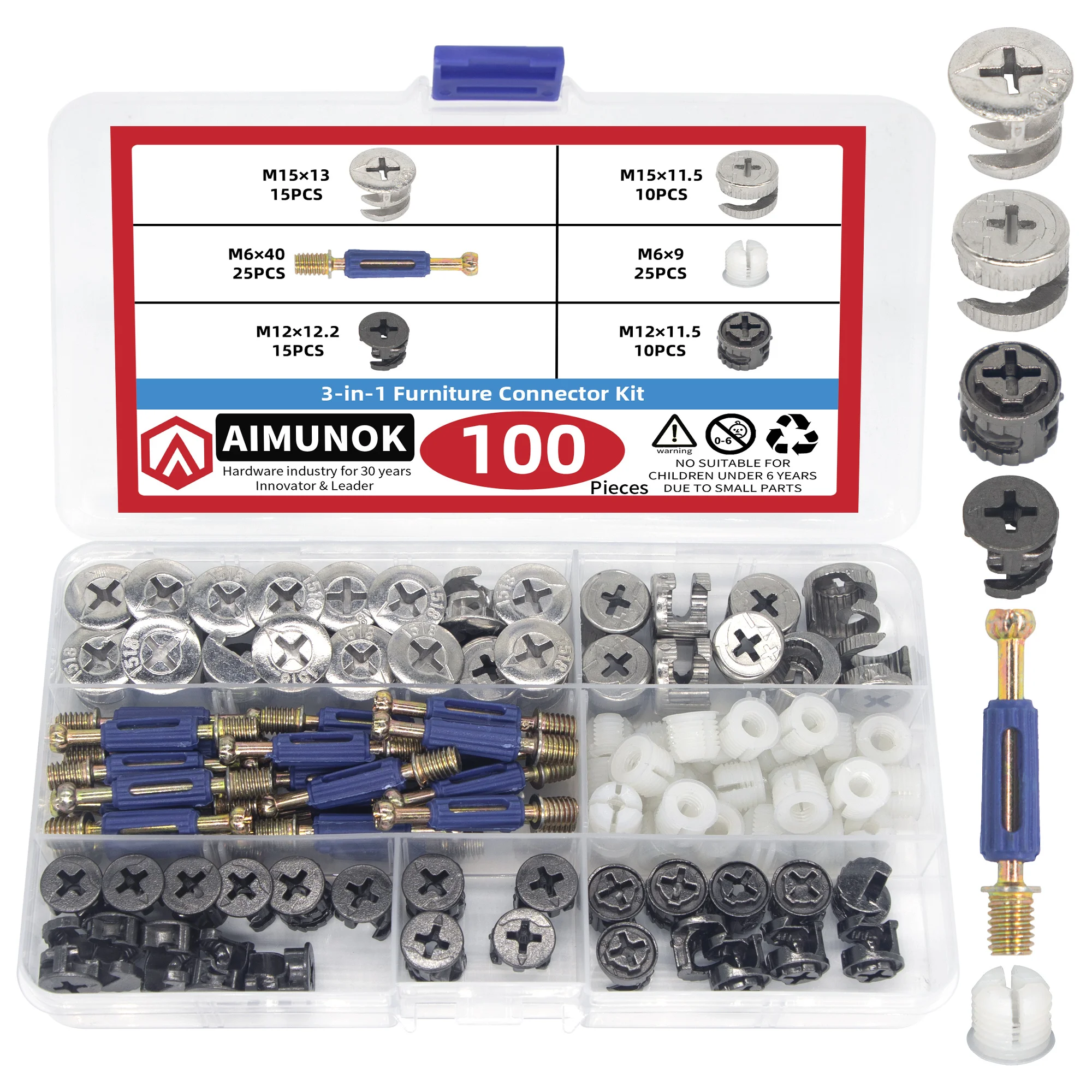 100pcs 3-in-1 Furniture Connector Kit Eccentric Wheel Screw Fastener Furniture Bolt and Nut Set Clothes Cabine Desk Link Fixer