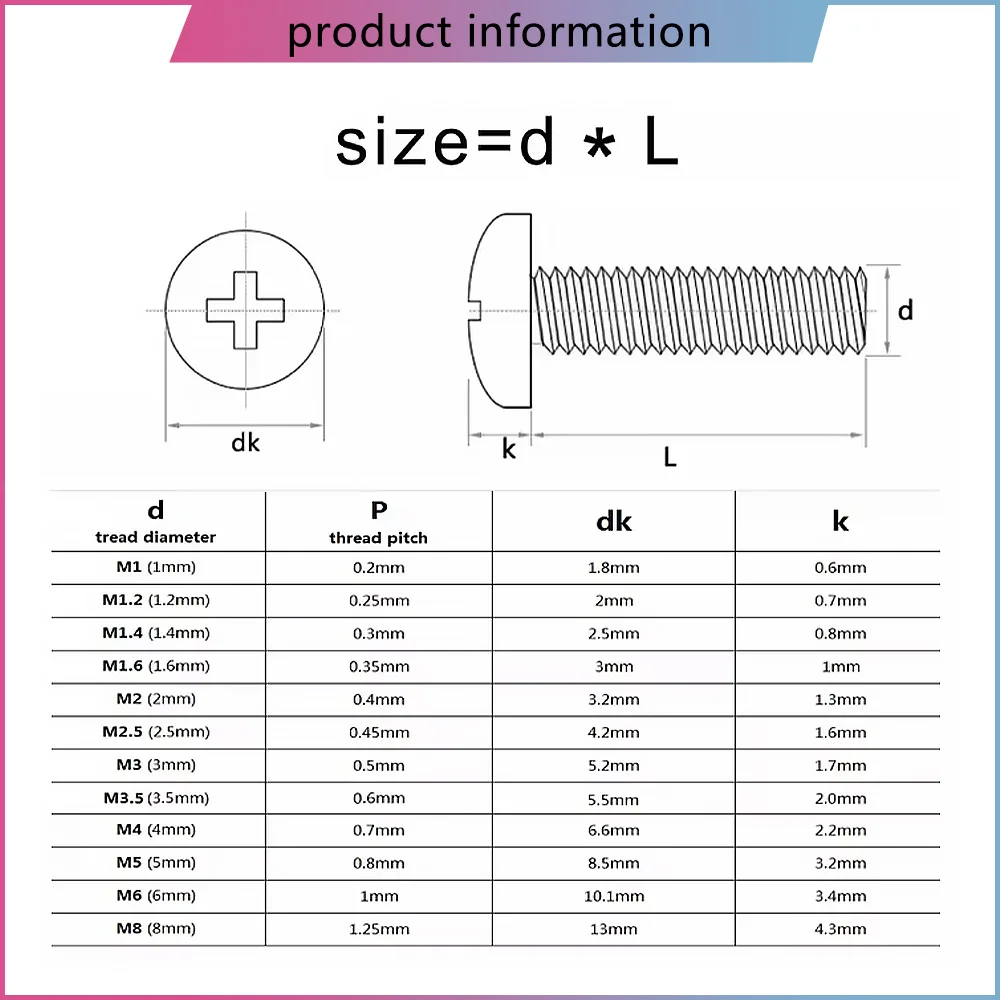 DIN7985 M2 M2.5 M3 M3.5 M4 M5 M6 M8 304 Stainless Steel Cross Recessed Pan Head Screw GB818 Phillips TV Computer Bolts 5-50pcs