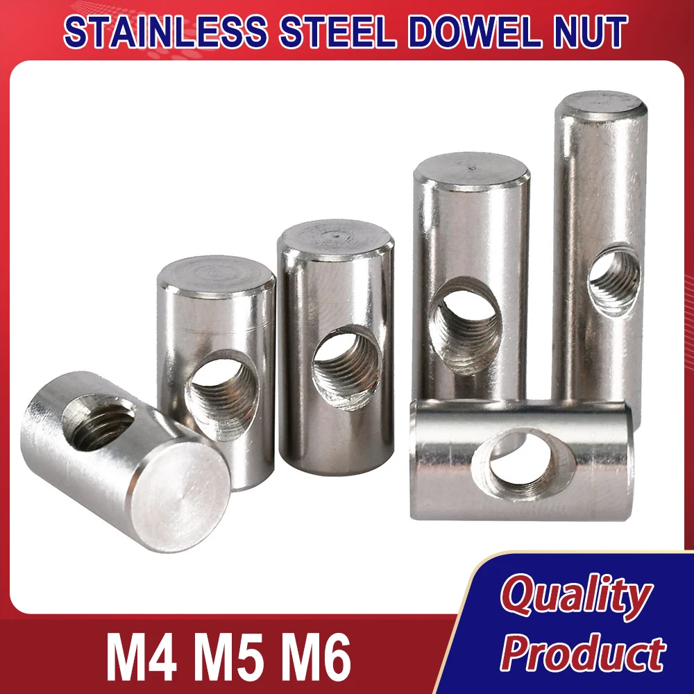 M4 M5 M6 304 Stainless Steel Barrel Bolts Cylindrical Pin Dowel Cross Hole Hammer Embedded Nut for Wood Furniture Accessories