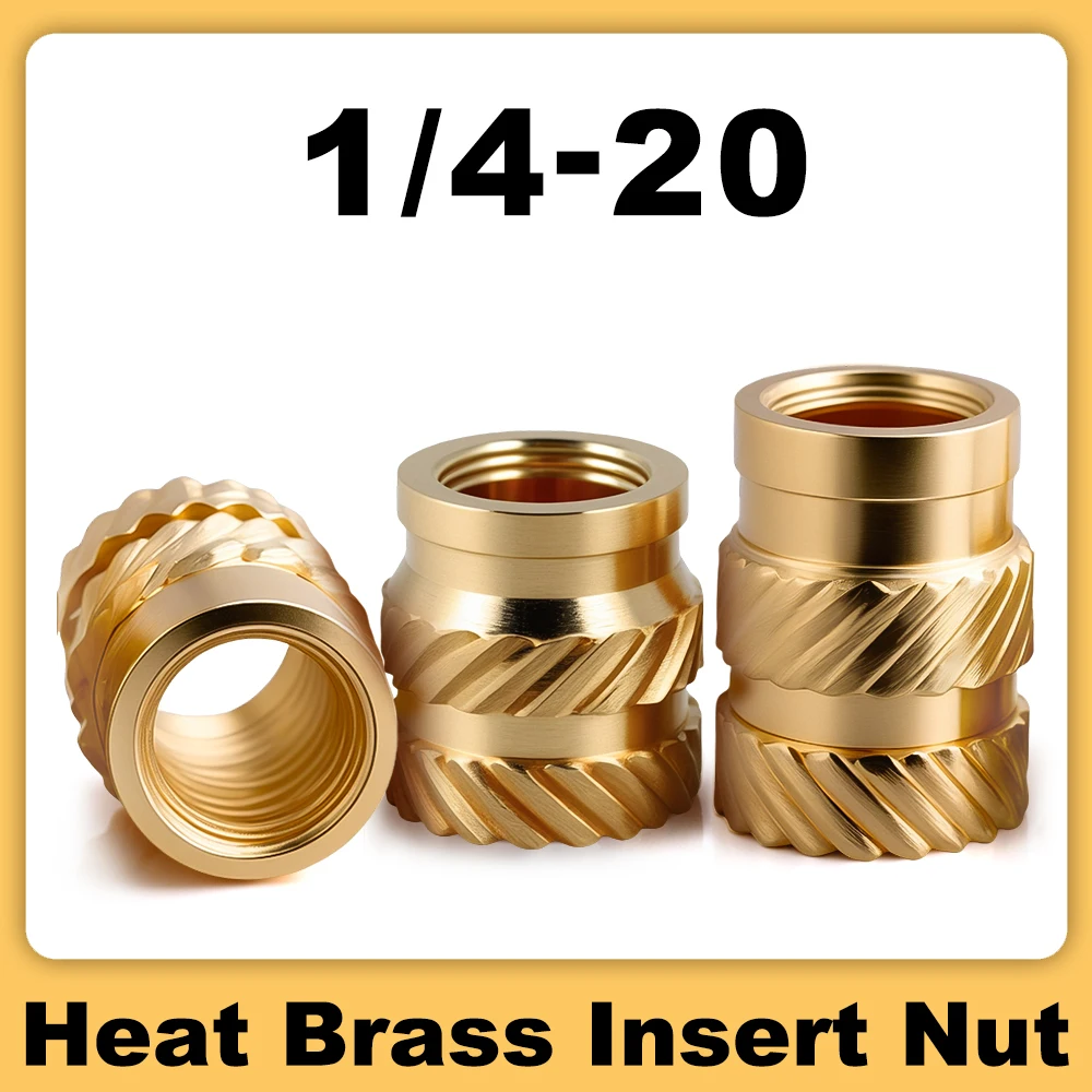 1/4-20 UNC Heat Brass Insert Nut Double Twilled Knurled Injection Molding Embedment Inserts Hot Melt 3D Printing Inserts Nuts