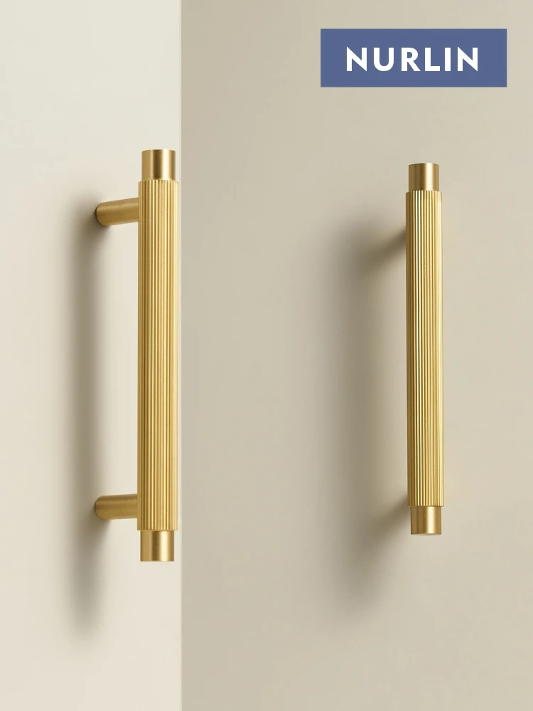 Nurlin Solid Brass Linear Pattern Cabinet Knobs Wardrobe Cabinet Door Drawer Handle Gunmetal Matte Gold Antique Bronze Pull