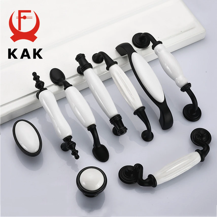 KAK Ceramic Black White Cabinet Handles Drawer Knobs Zinc Alloy Wardrobe Door Handles Pulls Simple European Furniture Handle