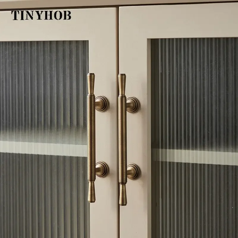 Tinyhob Vintage Antique Bronze Solid Brass T-Bar Cabinet Door Handle for Bedroom Drawer Wardrobe Pull / Drop Shipping Available