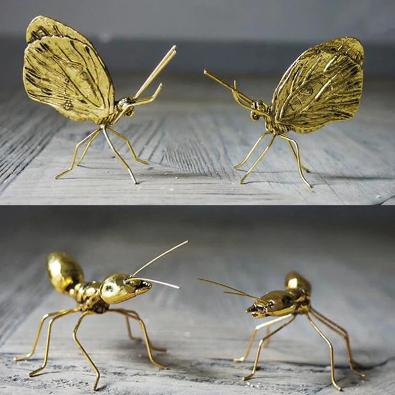 Small Metal Handicraft Copper Gold Ant Butterfly Ornament for Art Decor Home Decorative Christmas Gift