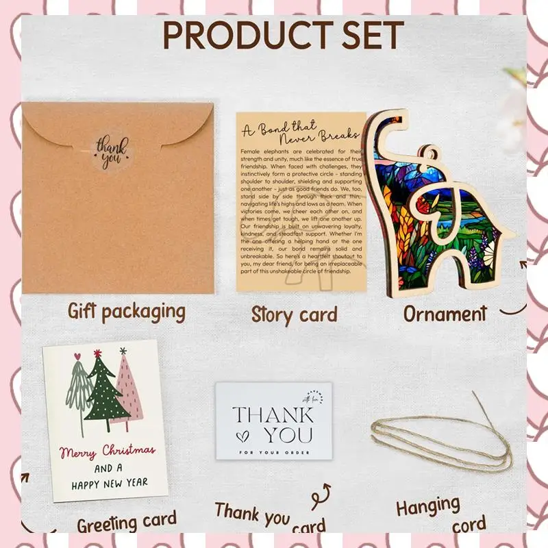 HHTL Friendship Elephant Valentines Ornament With Story Card, Sisterhood Elephant Ornament For Women Tribe, Friendship Gifts