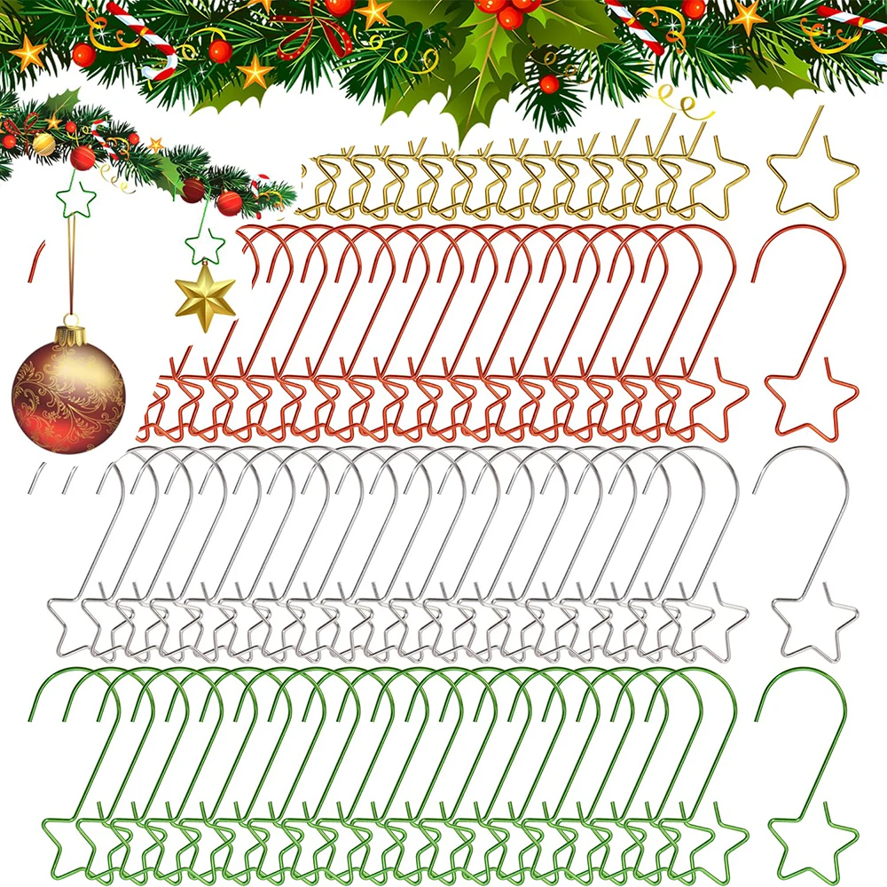 20pcs/bag Stars Shaped Hook Metal Star Ornament Hangers Ball Bulb Hangings Hooks Pins Clips for Christmas Tree Home Party Decor