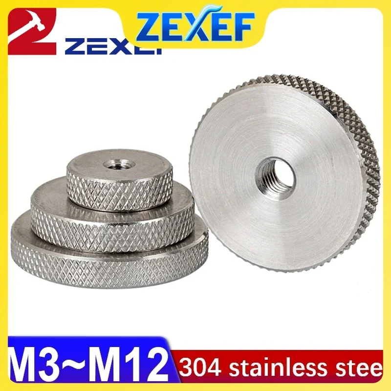 ZEXEF Knurled Thumb Nuts 304 Stainless Steel Flat Head Hand Screw Knurled Round Nut Hardware Fasteners M4 M5 M6 M8 M10 M12