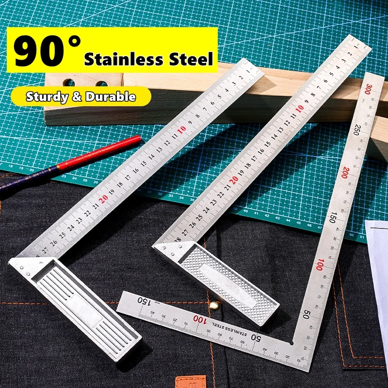 300/500mm Aluminum Alloy Square Ruler Right Angle 90° Turning Ruler Woodworking Ruler Steel Turning Ruler Measuring Tools Gauge