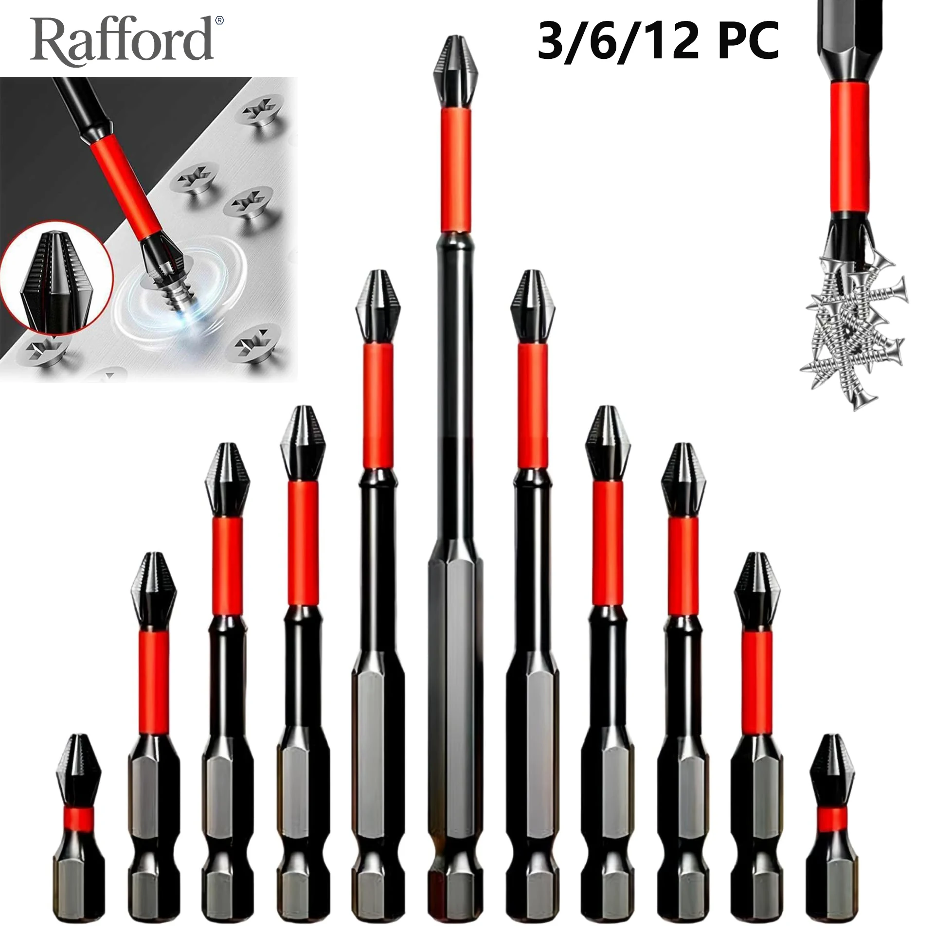 Rafford Anti Slip bits Magnetic Screwdriver bit Set S2 Alloy Steel Impact Resistance Bits-3/6/12Pcs Suitable for Electric Drills