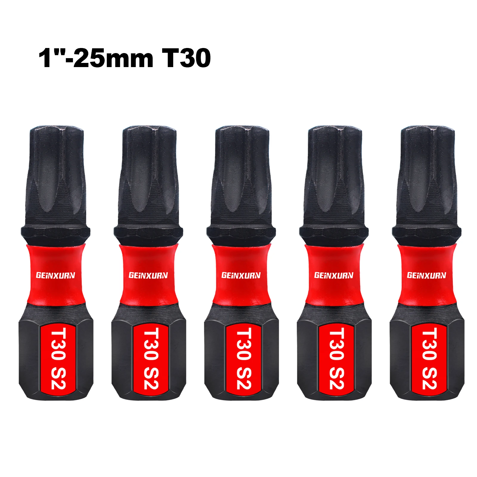 GEINXURN Impact Tough #25 Torx 1 in. Insert Driver Bits, Magnetic T25 Power Bits, S2 Alloy Steel T25 Screwdriver Bits Set Bulk