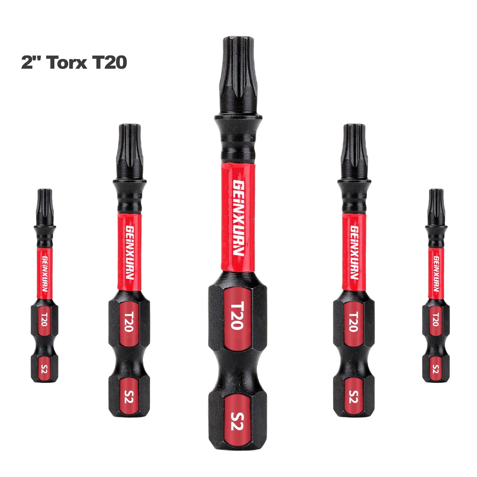 GEINXURN T20 2 In. Impact Tough Magnetic #20 Torx Head Power Bits, S2 Alloy Steel T20 Screwdriver Bits Set