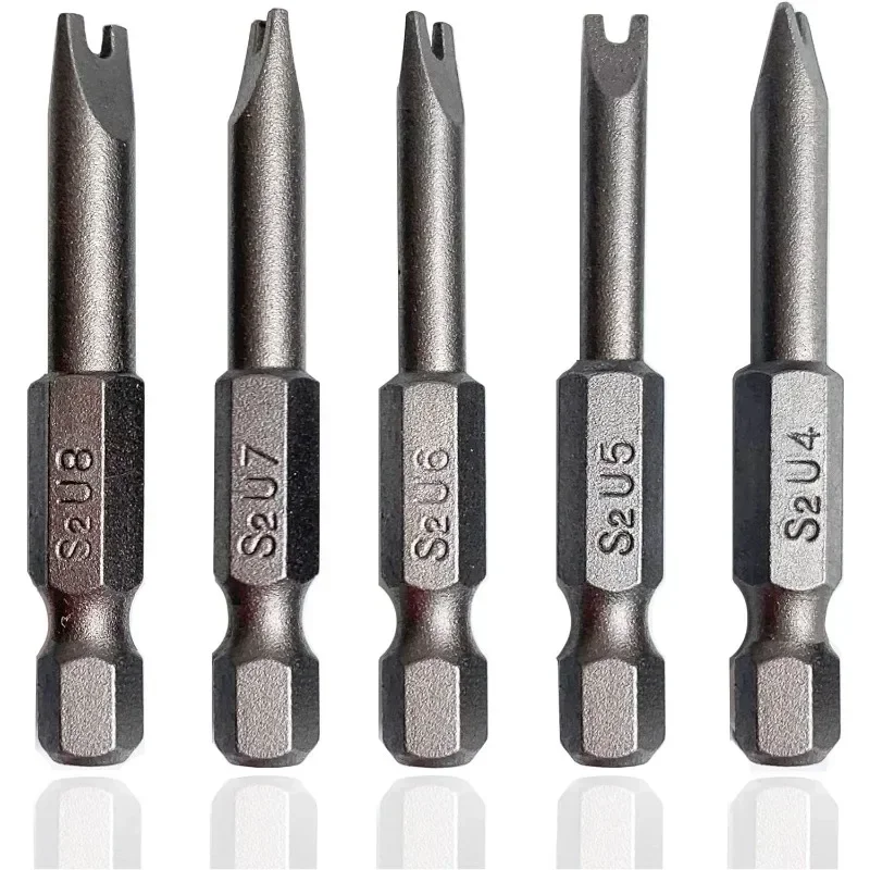 5pcs Magnetic U-shaped Tip Electric Screwdriver Bit 50mm 1/4 Inch Hex Handle U4 U5 U6 U7 U8 S2 Alloy Steel Magnetic Bits