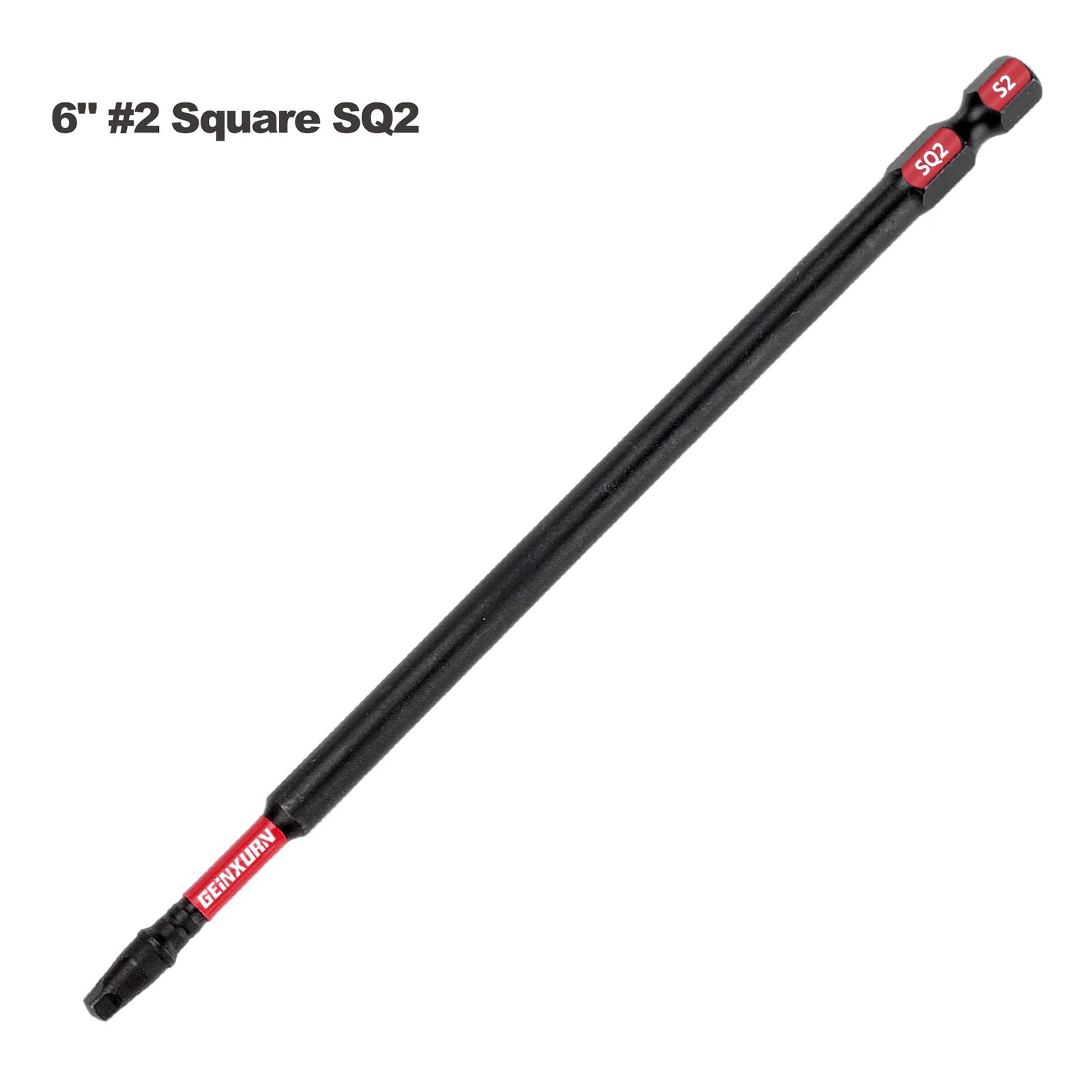 GEINXURN Impact Tough #2 Square 6 in. Power Driver Bits, S2 Alloy Steel Magnetic SQ2 Screwdriver Bits Set