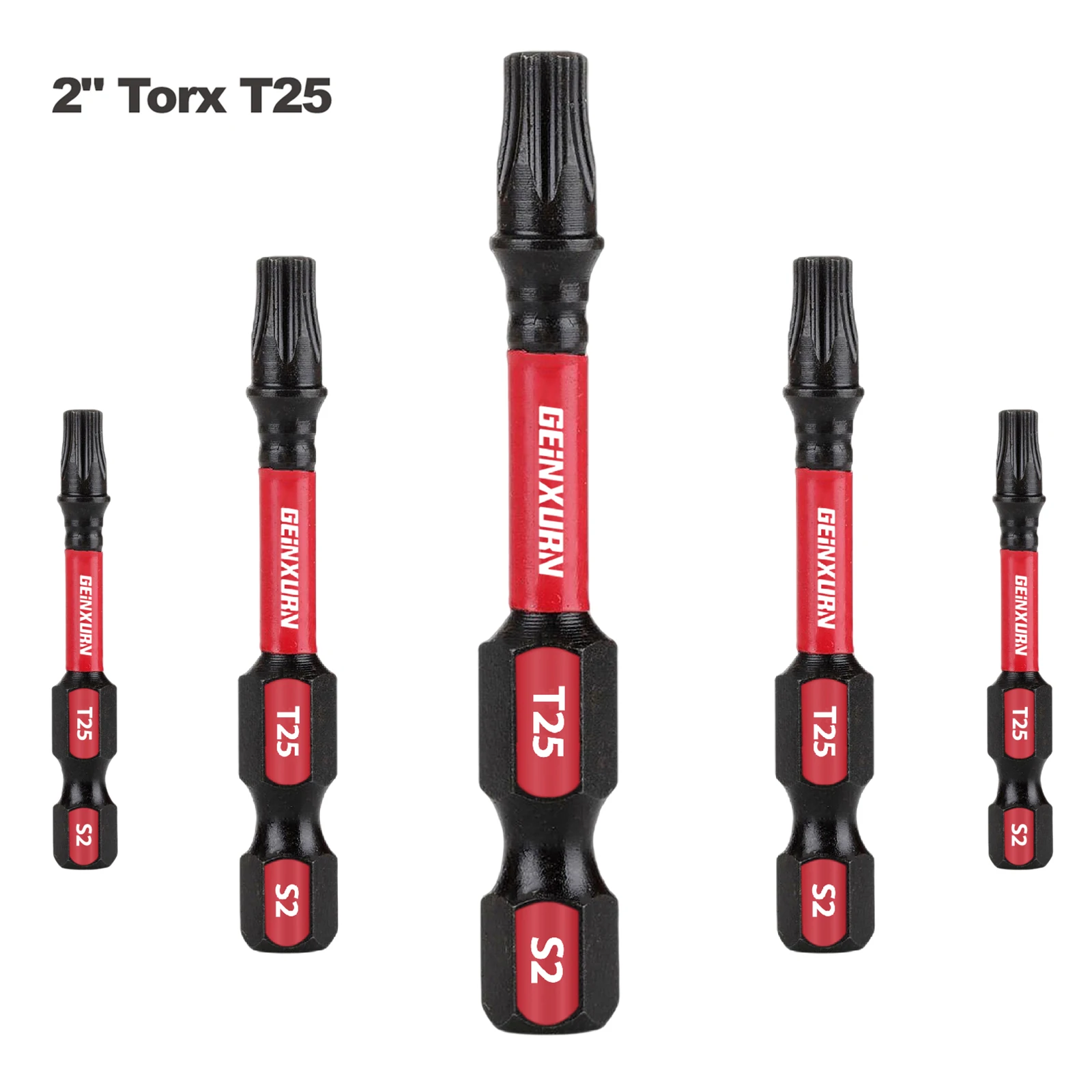 GEINXURN T25 2 In. Impact Tough Magnetic #25 Torx Head Power Bits, S2 Alloy Steel T25 Screwdriver Bits Set