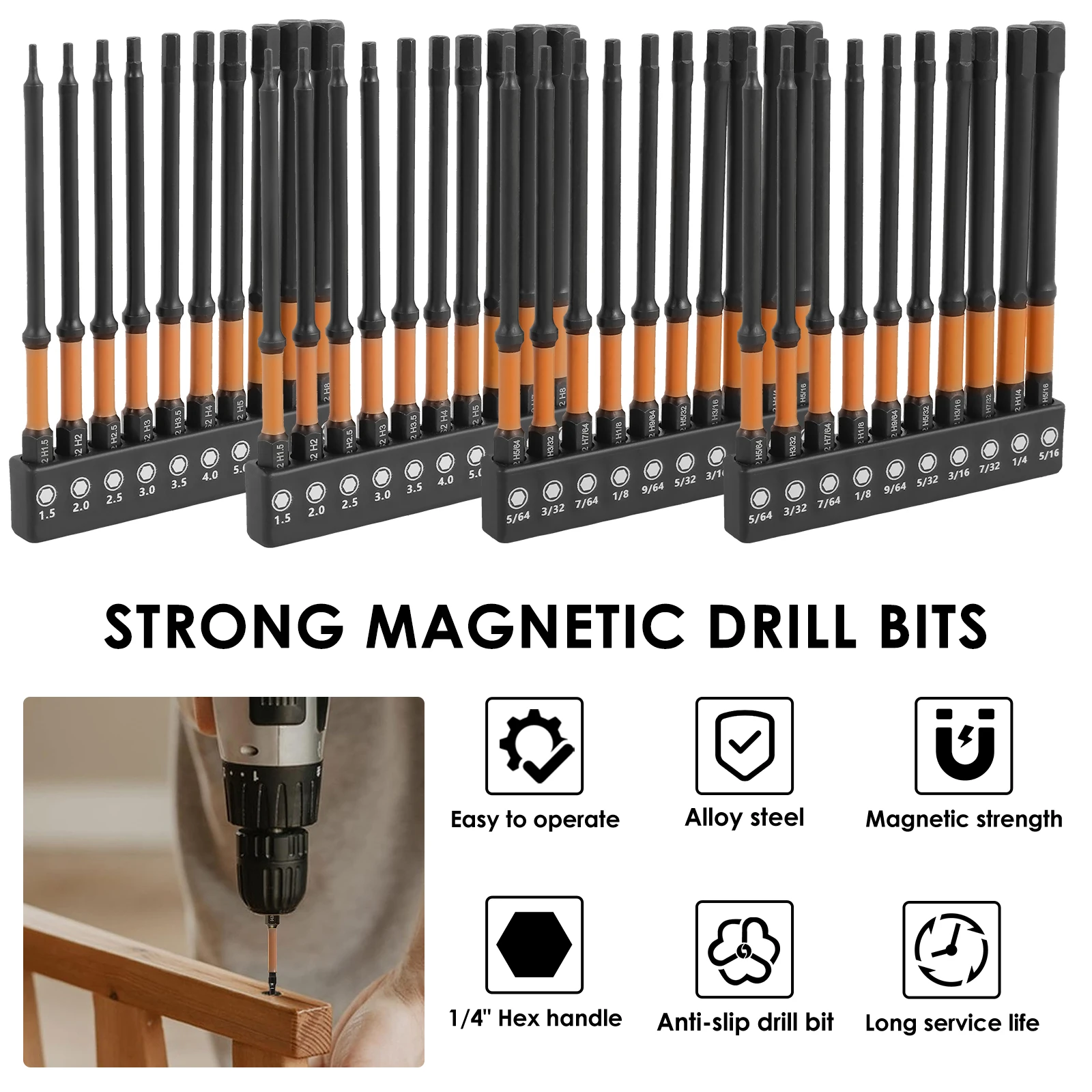 10/20Pcs Impact Hex Bit Set Metric and SAE S2 Alloy Steel Allen Wrench Drill Bit with Magnetic Tips 1/4in Screw Driver Drill Bit
