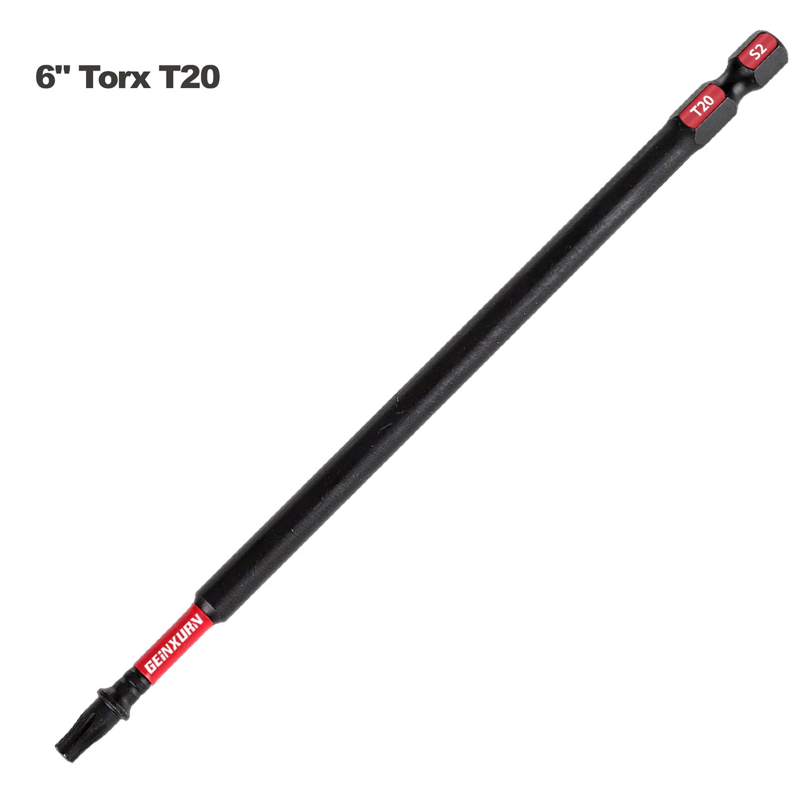 GEINXURN Impact Tough #20 Torx 6 in. Insert Driver Bits, Magnetic T20 Power Bits, S2 Alloy Steel T20 Screwdriver Bits Set Bulk