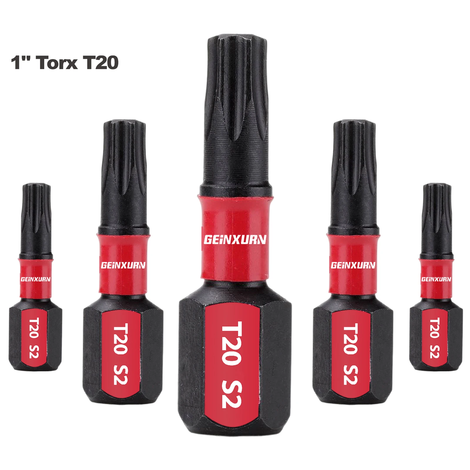 GEINXURN Impact Tough #20 Torx 1 in. Insert Driver Bits, Magnetic T20 Power Bits, S2 Alloy Steel T20 Screwdriver Bits Set Bulk