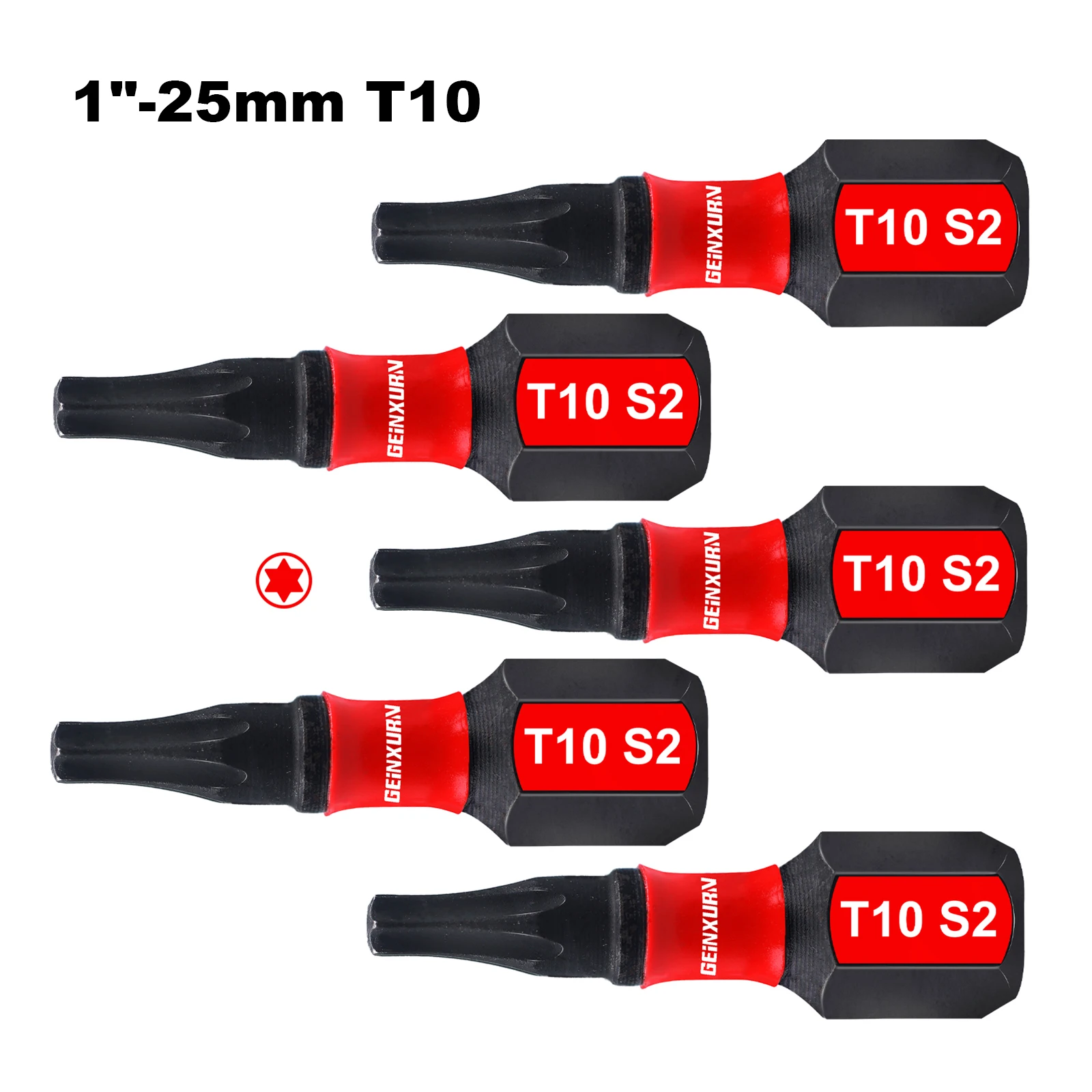 Geinxurn 1 In.Impact Tough Magnetic Power Bit Set, Torx Head Power Bits, S2 Alloy Steel Star T10 Screwdriver Bits Set