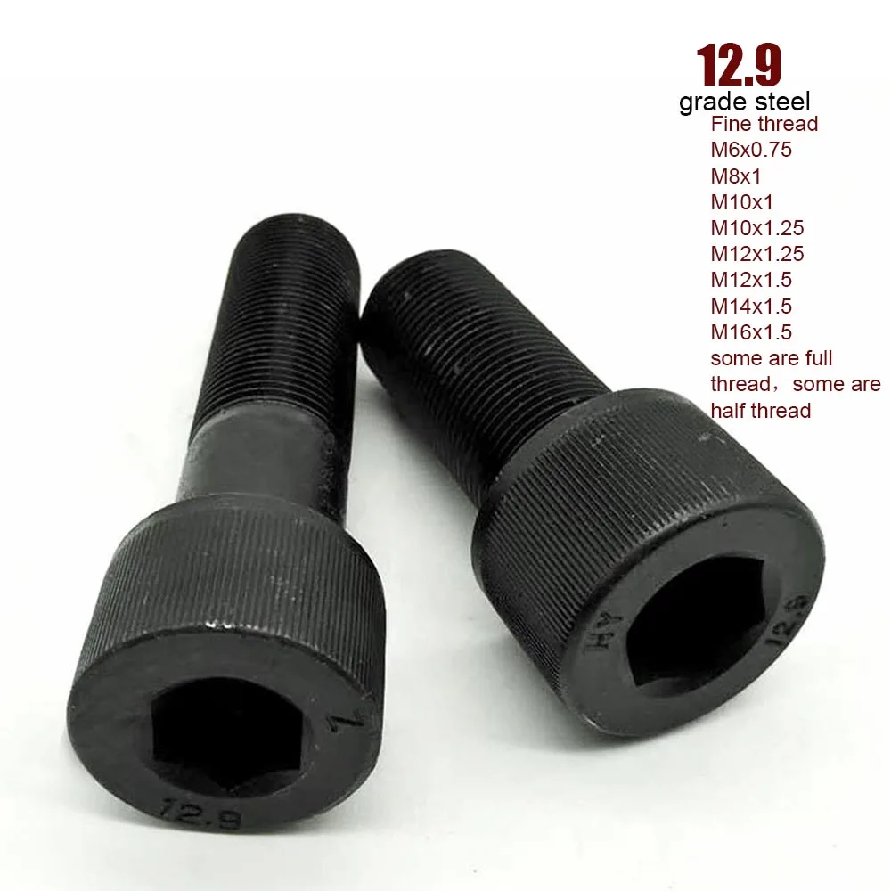 Fine Thread DIN912 M6 M8 M10 M12 M14 M16 Pitch 0.75 to1.5mm 12.9 Grade Alloy Steel Allen Hexagon Hex Socket Cap Head Bolt Screw