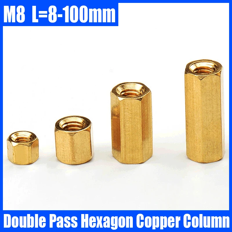 1PCS M8 8-100mm Double Pass Hex Brass Male Female Standoff Board Pillar Stud Hexagon Copper Column Nut Screw Hollow Column