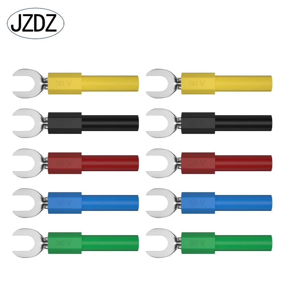 JZDZ 10PCS 6MM Insulated Fork Spade U-Type Wire Connector Electrical Crimp Terminal Copper Banana Socket 4mm J.20016