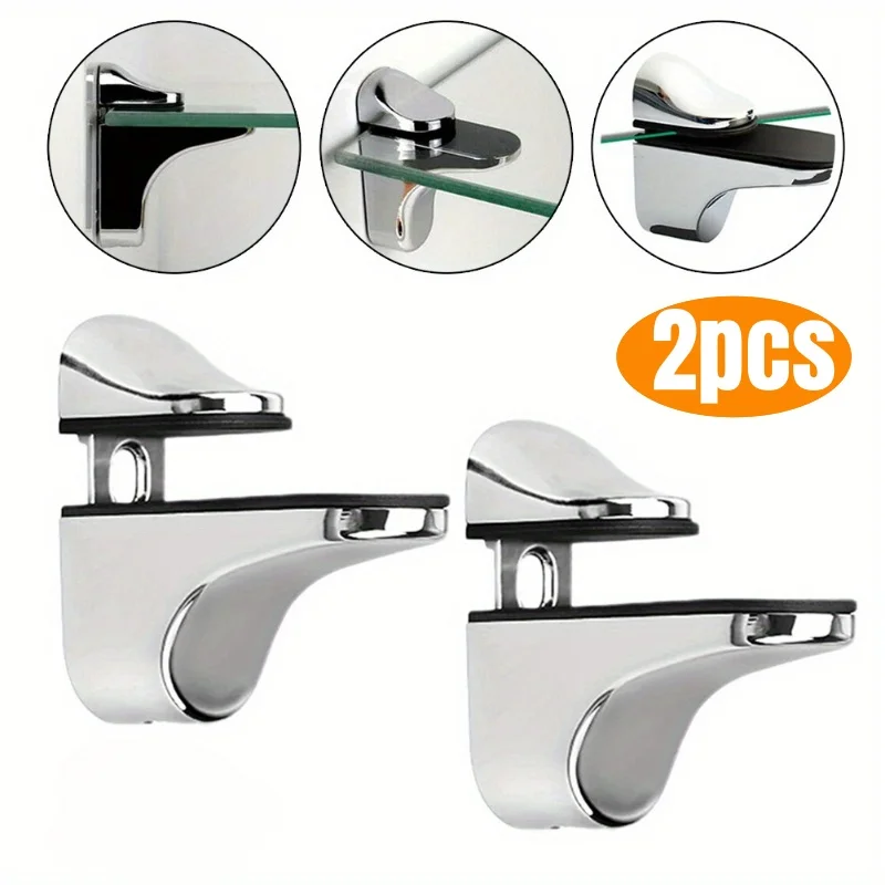 2pcs Adjustable Wood/Glass Shelf Support Clips Zinc Alloy Shelves Brackets with Anti-Slip Pads, Partition Clamps for Bathroom