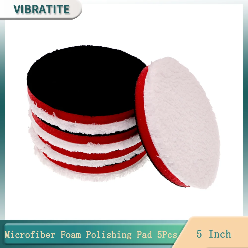 5Inch 125MM Professionally Microfiber Foam Polishing Pad 5Pcs Hook and Loop for Car Polisher Cutting Buffing Waxing