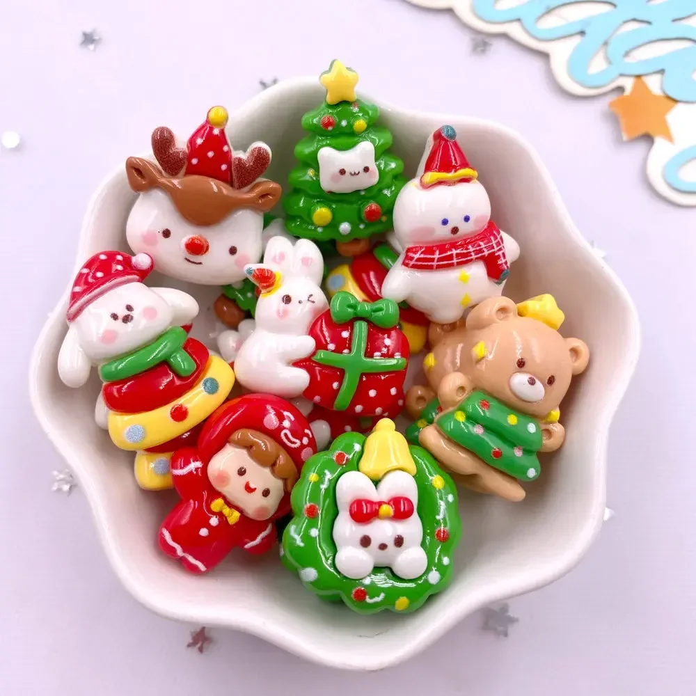 10PCS Resin Colorful Christmas Tree Wreath Rabbit Bear Deer Flatback Stone Cartoon Christmas Figurine Scrapbook DIY Decor M439 R