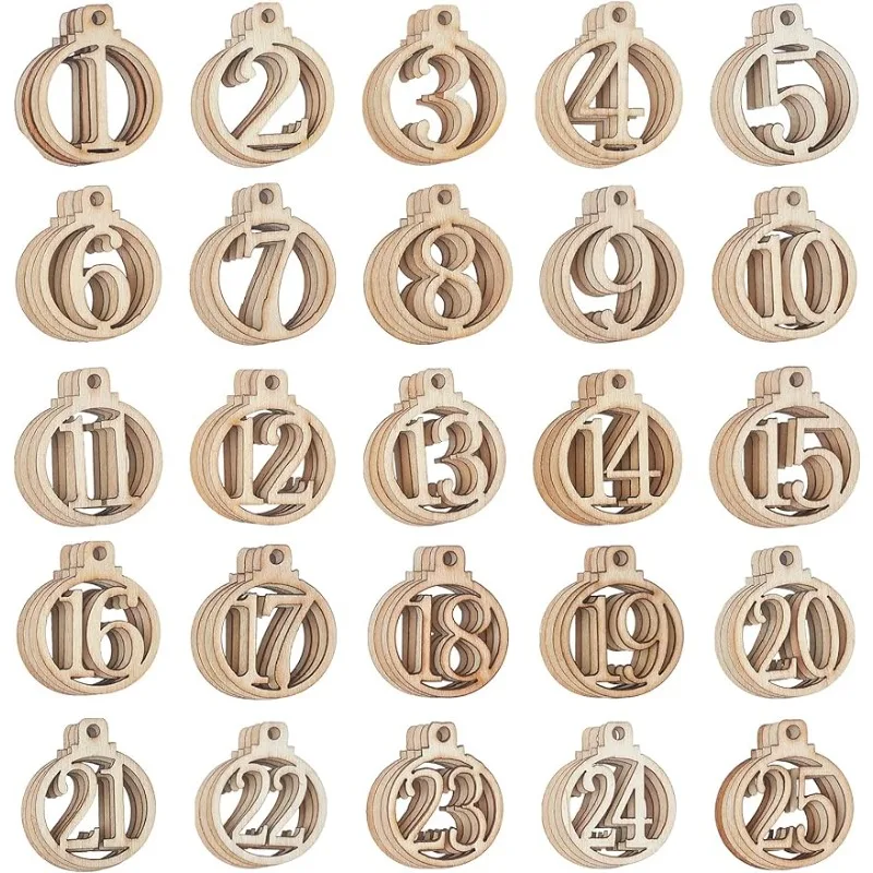 Number 1-25 Digital Wooden Christmas Advent Calendar Countdown DIY Xmas Tree Ornament Hanging Pendant Gift Decor Labels Tags