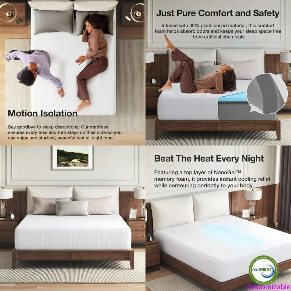 Mattress, 10-Inch Graphene Cooling Gel Memory Foam, Medium-Firm, CertiPUR-US Certified, Pressure Relief & Optimal Support,