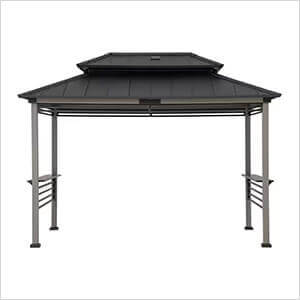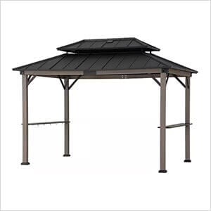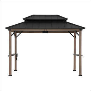 Sunjoy Group 8 x 12 Grill Gazebo with Electrical Outlets and Shelves (Brown)