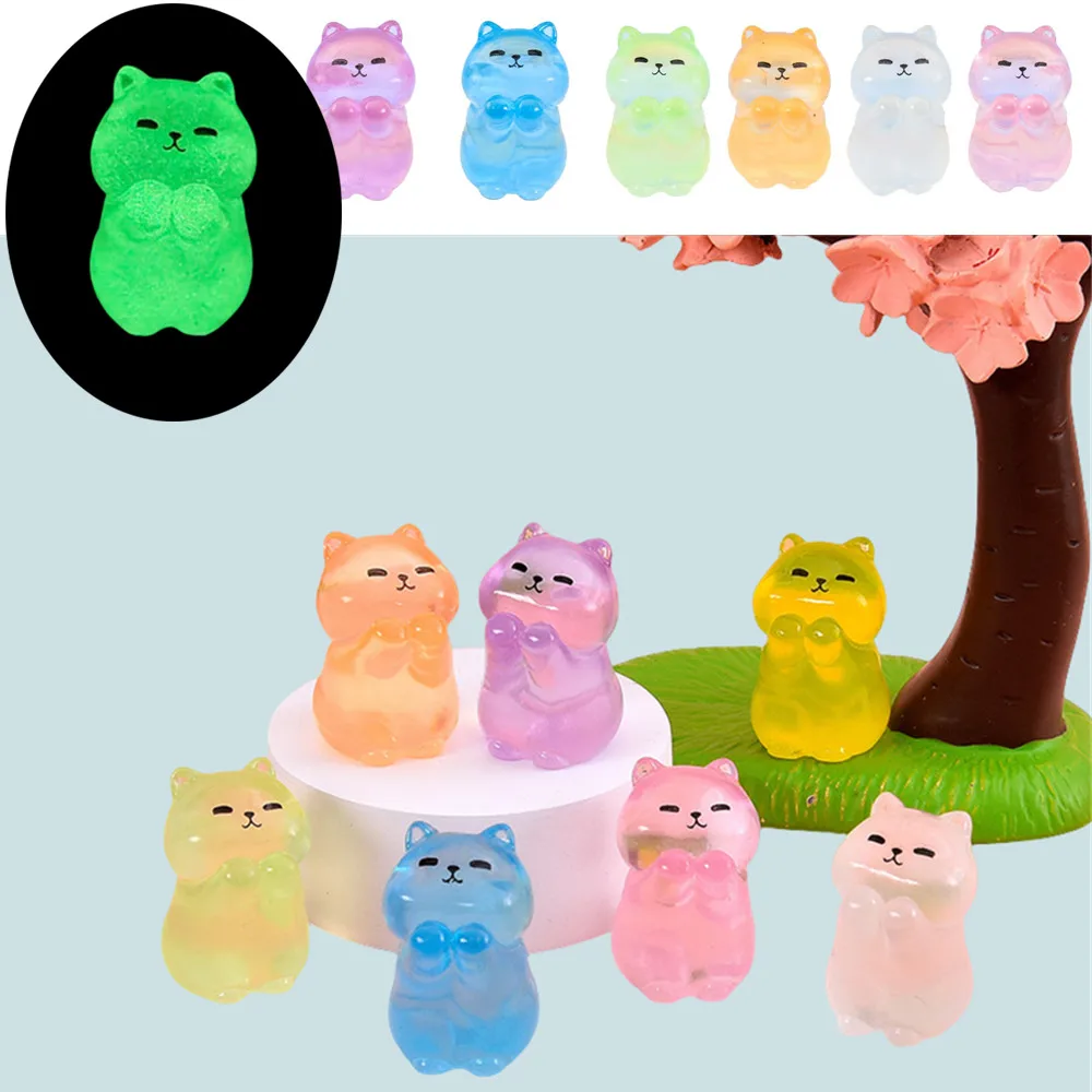 5/10pcs Luminous Mini Resin Cat Figures Glow in The Dark Cats Animals Tiny Ornaments for DIY Fairy Garden Glass Container
