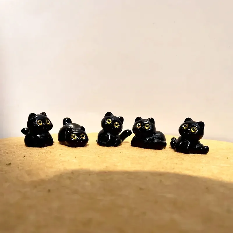 5/10 Pcs Miniature Resin Black Cat Statues Figurines for Home Decor, DIY Micro Landscape Fairy Garden Ornament Supplies
