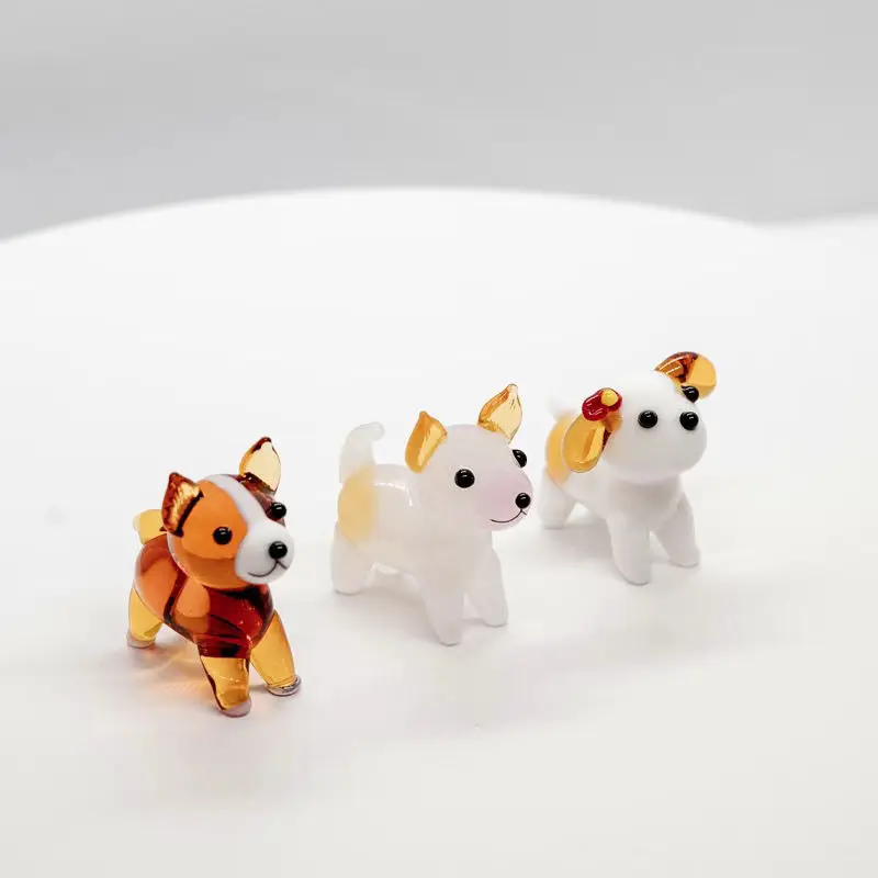 Mini Doggy Model Cute Cartoon Dog Glass Craft Ornaments Accessories Animal Statue Teddy Corgi Animal Statue Desktop Decoration