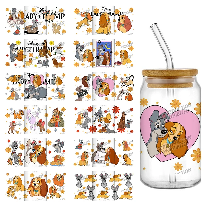 21 Exclusive Disney Lady and the Tramp 16oz UV DTF 3D Sticker Cartoon Dog Decals Wraps Glass Can Cup Creative Craft DIY Gift
