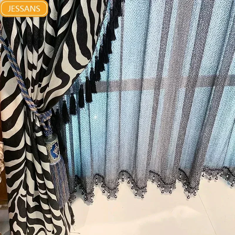 New Zebra Stripes Black and White Jacquard Thickened Blackout Curtains for Living Room Bedroom Window French Window Customized